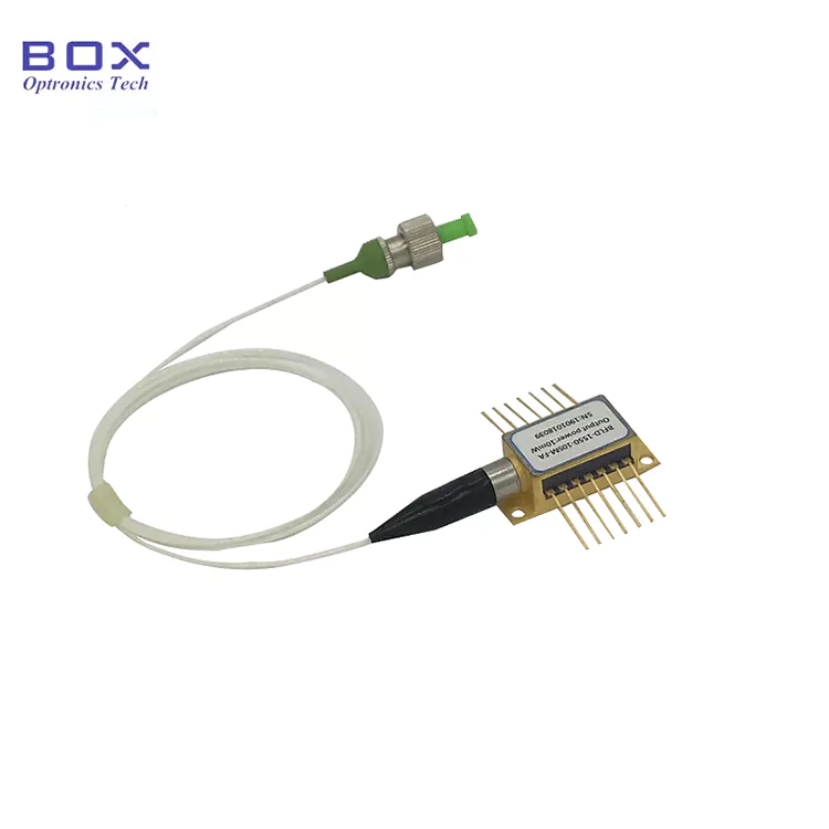 Box Optronics propose une diode de laser DFB infrarouge 1064 nm avec une capacité de 200 MW avec un dispositif de groupage en fibre dans un boîtier BTF à 14 broches. Ces dispositifs offrent une puissance très stable jusqu'à 200 MW en mode rayonnement continu. Fibres optiques à modules uniques et uniques disponibles en option. Ils sont équipés d'une charge thermoélectrique construite (étude de faisabilité) et des photodiides de surveillance. Coefficient de suppression de mod latérale> 40 dB. Ils sont souvent utilisés dans les systèmes de détection optique et comme sources de semences pour les lasers.