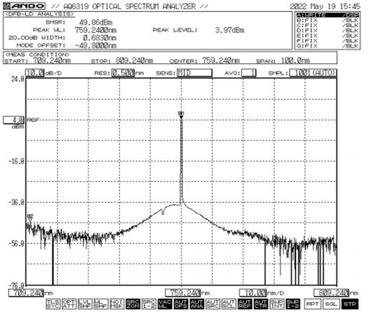 La diode laser DFB 760 nm laser optronique de haute qualité pour détecteur d'oxygène est équipée d'un laser à semi-conducteur à cristal papillon, d'un circuit de contrôle conçu par des professionnels et d'un condensateur thermoélectrique (TEC) pour garantir un fonctionnement sûr du laser, une puissance de sortie et un spectre stables. Convient comme source laser à pompe pour les lasers à fibre ou les amplificateurs à fibre EDFA. Peut être fourni dans un coffret de bureau ou modulaire.
